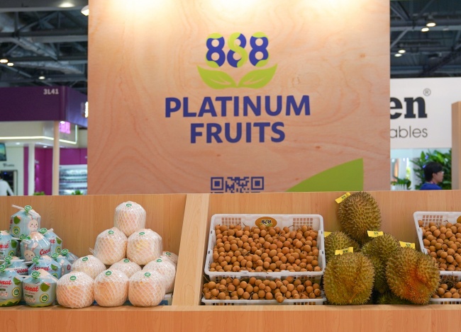 นอกจากผลไม้สดแล้ว ภายในงานปีนี้ แพลททินัม ฟรุ๊ต ได้นำ “ข้าวเหนียวทุเรียนสำเร็จรูป” ผลิตภัณฑ์ไลน์ใหม่ Ready to eat ที่บริษัทฯ ได้ทำการวิจัยพัฒนาเข้าไปเปิดตลาด พบว่าได้รับผลตอบรับเป็นอย่างดีโดยเฉพาะกลุ่มผู้ค้าในยุโรป ที่มีความลงตัวทั้งในเรื่องรสชาติและกลิ่นของน้ำกะทิทุเรียน