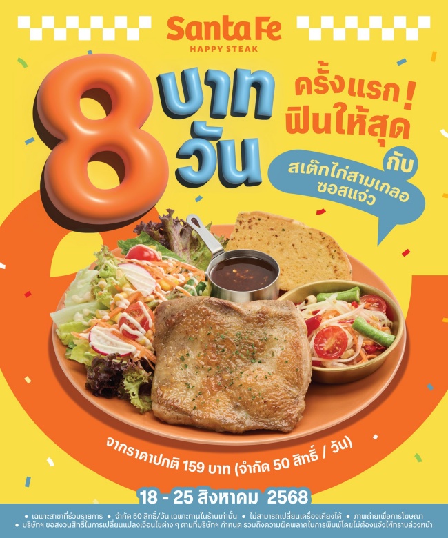 ตลาดร้านสเต็กในไทย ปี 2568 มูลค่าแตะ 9,000 ล้านบาท แข่งขันดุเดือดทั้ง Eat Am Are, Sizzler และแบรนด์ใหม่ The Steak & More ท่ามกลางศึกนี้ Santa Fe รีแบรนด์ครั้งใหญ่เป็น Santa Fe Happy Steak ใช้โทนสีสดใส พร้อมกลยุทธ์เข้าถึง Gen Z โดย FAB Food Holding ภายใต้การนำของ ‘เบียร์ ใบหยก’ เข้ามาขับเคลื่อนการรีแบรนด์ครั้งนี้ ต่อความเคลื่อนไหวดังกล่าวสอดรับเทรนด์ผู้บริโภคยุคใหม่ที่มองหาอาหารคุ้มค่าและประสบการณ์ที่แตกต่าง ทำให้ตลาดสเต็กจึงกลายเป็นสมรภูมิสำคัญ ที่แบรนด์เก่าต้องปรับตัว และแบรนด์ใหม่พยายามสร้างพื้นที่ของตัวเอง