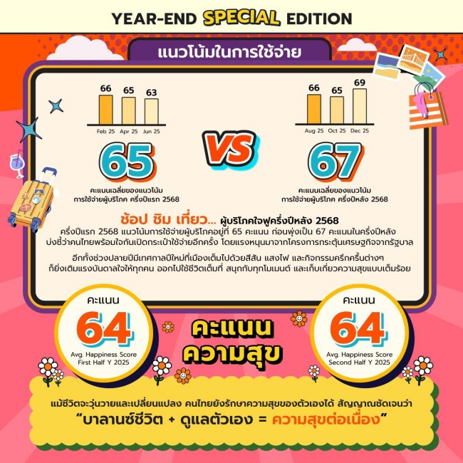 ส่งท้ายปี68 ‘คนไทย’ ใช้จ่ายพุ่ง 4 เท่า เพื่อฮีลใจ แวะเติม ‘พลัง’ ส่งตัวเองไปต่อปีหน้า