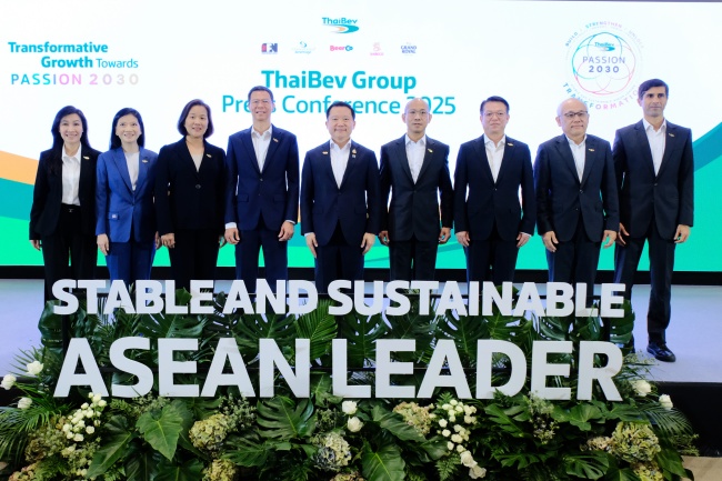 ‘ฐาปน สิริวัฒนภักดี’ ผู้บริหารสูงสุดกลุ่มไทยเบฟ ในฐานะประธานเจ้าหน้าที่บริหาร บริษัท ไทยเบฟเวอเรจ จำกัด (มหาชน) พร้อมทีมผู้บริหาร 4 กลุ่มธุรกิจ สุรา เบียร์ เครื่องดื่มไม่มีแอลกอฮอล์ และอาหาร ร่วมขึ้นเวทีใหญ่ประจำปี 2568 พร้อมฉายทิศทางธุรกิจภายใต้ ‘PASSION 2030’ ในฐานะผู้นำที่มั่นคงและยั่งยืนของอาเซียน ในธุรกิจเครื่องดื่มและอาหาร