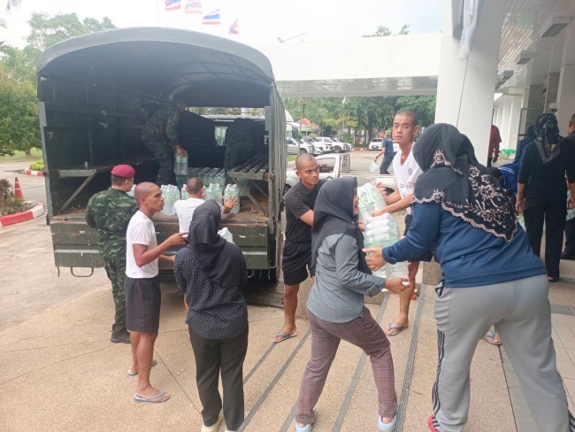 คุณอดิศักดิ์ เทพอาสน์ ประธานกรรมการโครงการบรรเทาสาธารณภัยและจิตอาสา บริษัท ไทยเบฟเวอเรจ จำกัด (มหาชน) เผยแนวทางการช่วยเหลือในด้านต่าง ๆ และแนวทางการฟื้นฟูว่า “กลุ่มไทยเบฟ โดยคุณฐาปน สิริวัฒนภักดี ประธานเจ้าหน้าที่บริหาร ได้มอบหมายให้ผมนำทีมเข้าปฎิบัติการลงพื้นที่เพื่อให้ความช่วยเหลือ และบรรเทาความเดือดร้อนให้กับพี่น้องประชาชนที่ได้รับผลกระทบในพื้นที่ต่าง ๆ อย่างต่อเนื่อง 10 จังหวัดในภาคเหนือตอนล่างและภาคกลาง โดยได้ส่งมอบน้ำดื่ม และสิ่งของต่าง ๆ ให้กับผู้ว่าราชการจังหวัดเพื่อช่วยกระจายความช่วยเหลือไปยังบ้านเรือนของประชาชน รวมทั้งได้ผสานความร่วมมือกับกองทัพเรือ เพื่อช่วยขนส่งน้ำดื่มไปช่วยเหลือพี่น้องประชาชนในพื้นที่ทางภาคใต้ที่กำลังประสบความเดือดร้อนอย่างแสนสาหัสจากมหาอุทกภัยครั้งนี้ โดยได้นำน้ำดื่มขนส่งจากกองบัญชาการฐานทัพเรือสัตหีบไปยังพื้นที่หาดใหญ่จังหวัดสงขลา และอีกหลายจังหวัดชายแดนภาคใต้ ซึ่งตอนนี้เรือหลวงจักรีนฤเบศรได้เดินทางไปถึงจังหวัดสงขลา และได้นำน้ำดื่ม และเครื่องอุปโภคบริโภคของทั้งไทยเบฟ และคณะนักศึกษา วปอ. 66 นำไปส่งต่อให้ผู้ประสบภัยผ่านทหารเรือเรียบร้อยแล้ว รวมถึงได้จัดส่งไปที่ศาลากลางจังหวัดสงขลา เพื่อส่งต่อไปยังค่ายเสนาณรงค์ (มทบ. 42) ซึ่งเป็นกองบัญชาการช่วยเหลือผู้ประสบภัยของจังหวัดสงขลา และได้ส่งมอบให้หน่วยงานอาสา และมูลนิธิต่าง ๆ ที่เข้ามาช่วยเหลือค้นหาผู้ประสบภัยให้สามารถที่จะนำน้ำดื่มเข้าถึงผู้ประสบภัยได้อย่างรวดเร็ว นอกจากนี้ ไทยเบฟยังขนส่งนำดื่มผ่านไทยเบฟโลจิสติกส์ไปยังอีกหลายพื้นที่จังหวัดชายแดนภาคใต้ โดยได้ผสานความร่วมมือกับศูนย์อำนวยการบริหารจังหวัดชายแดนภาคใต้ (ศอ.บต.) ให้ช่วยกระจายต่อไปยังพี่น้องประชาชนอย่างรวดเร็วที่สุด”