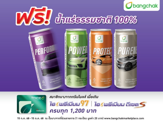 ล่าสุด บริษัท บางจาก คอร์ปอเรชั่น จำกัด (มหาชน) จัดสมนาคุณสมาชิกบางจากกรีนไมลส์ เมื่อเติมน้ำมันกลุ่มไฮพรีเมียม ได้แก่ บางจากไฮพรีเมียม 97 หรือ บางจากไฮพรีเมียมดีเซล S ครบทุก 1,200 บาท รับฟรี น้ำแร่ธรรมชาติ 100% บรรจุกระป๋องลิมิเต็ดคอลเลกชัน จำนวน 1 กระป๋อง มูลค่า 25 บาท มีทั้งหมด 4 ลวดลายน่าสะสม ตั้งแต่ 15 กรกฎาคม 2568 ถึง 15 ตุลาคม 2568 ณ สถานีบริการน้ำมันบางจากทั่วประเทศที่ร่วมรายการ พิเศษ! รับเพิ่ม ส่วนลดลิตรละ 3 บาท ทุกวันจันทร์จนถึงวันจันทร์ที่ 29 กันยายน 2568 ดูรายละเอียดเพิ่มเติมได้ที่ www.bangchakmarketplace.com