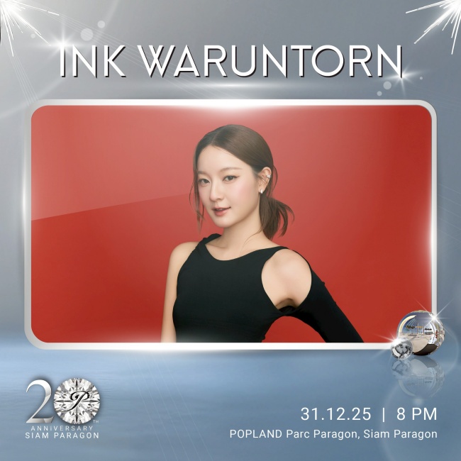 - วันที่ 31 ธันวาคม 2568 เวลา 00 น. ณ พาร์ค พารากอน พบกับนักร้องสาวเสียงดี ‘อิ๊งค์-วรันธร เปานิล’ พร้อมส่งต่อเวทีใน เวลา 23.30 น.ให้คู่จิ้นแห่งปี ‘เก่ง-หฤษฎ์ บัวย้อย’ และ ‘น้ำปิง-นภัสกร ปิงเมือง’ ร่วมนับเวลาถอยหลังส่งความสุขมอบรอยยิ้มข้ามปีไปด้วยกัน สร้างคืนเค้าท์ดาวน์สุดโรแมนติกที่แตกต่าง ไม่เหมือนใคร